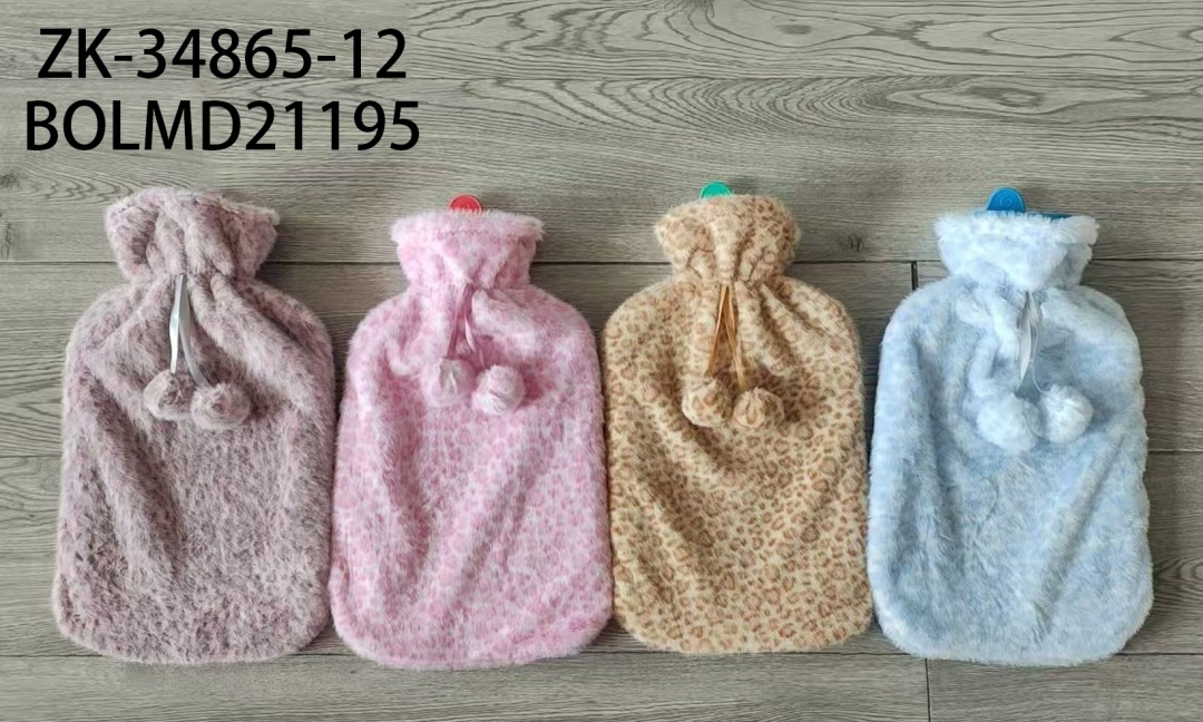 BOLSA DE GOMA CON FUNDA DE PELUCHE CON DETALLE DE POMPOMCITOS.